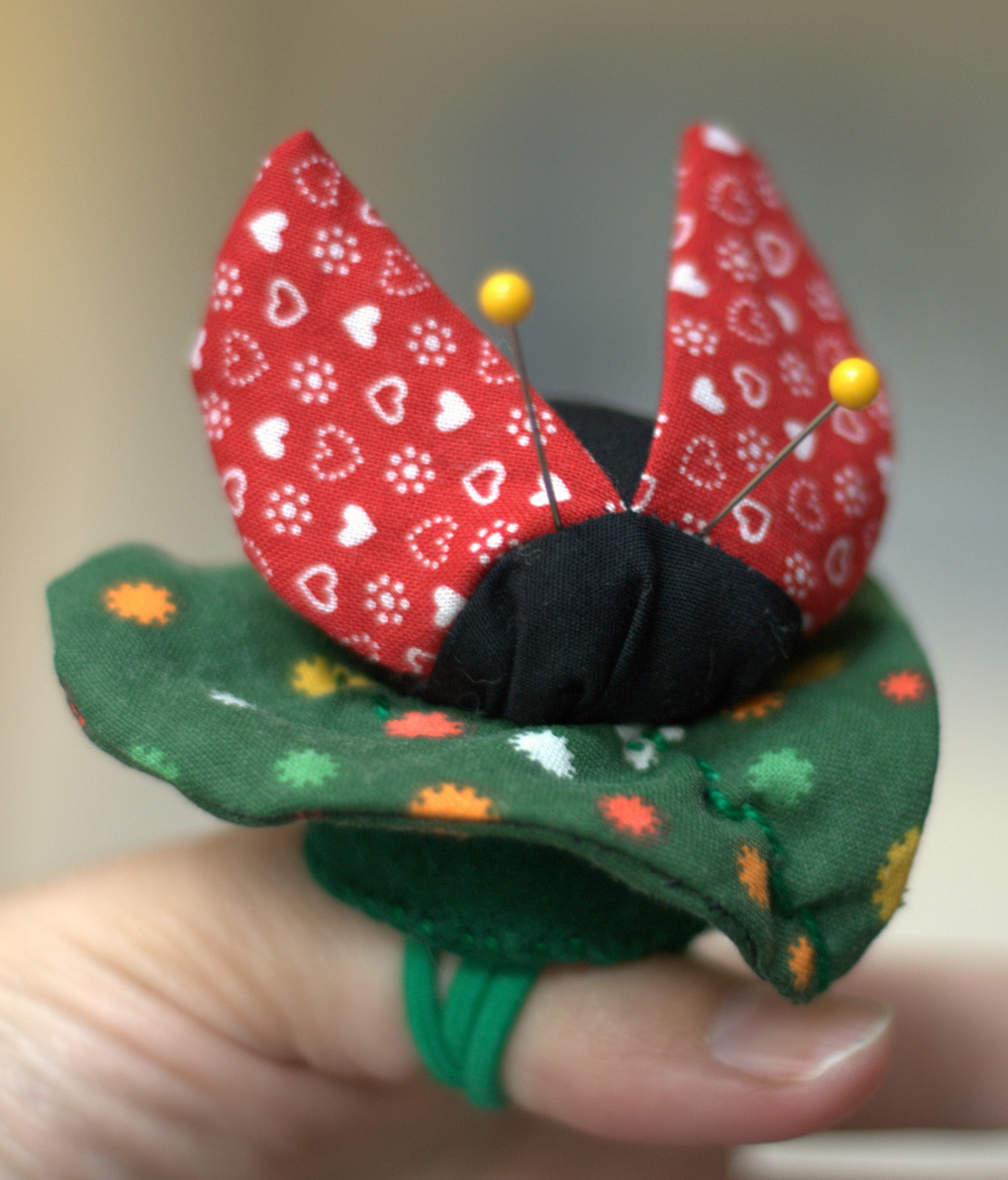 Made using fabric scraps, felt, a plastic bottle cap, and some hair elastic. Here’s the blog post with pdf instructions
